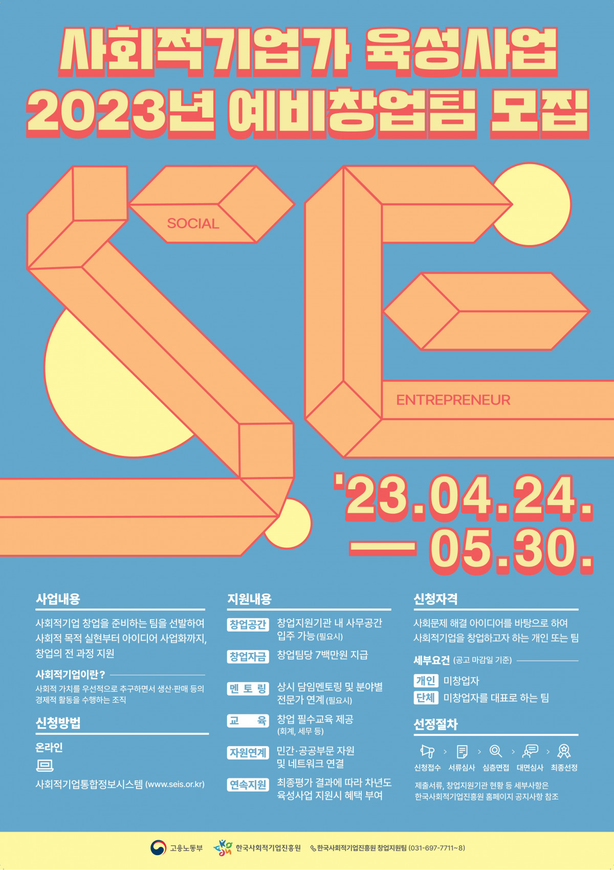 사회문제 해결 아이디어를 바탕으로하여 사회적기업을 창업하고자 하는 개인 또는 팀의 많은 참여 바랍니다.